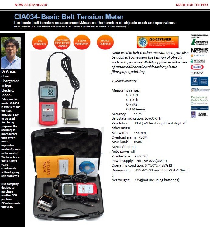 Main used in belt tension measurement,can also be applied to measure the tension of objects such as tapes,wires.Widely applied in industries of automobile,textile,cables,wires,plastic films,paper,printting.